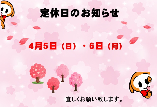 明日4/5(日)は店休日となります。